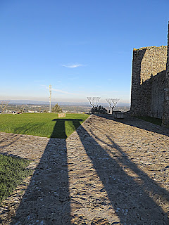 Desenhando um triângulo, o conjunto que hoje observamos possui corpo central de planta rectangular e dois torreões (torres largas e ameadas) insertos no próprio muralhado de planta poligonal da Vila. Os dois pisos inferiores foram completados com um amplo terraço circundado por balcão com mata-cães sobre arcaria apontada assente em mísulas piramidais.